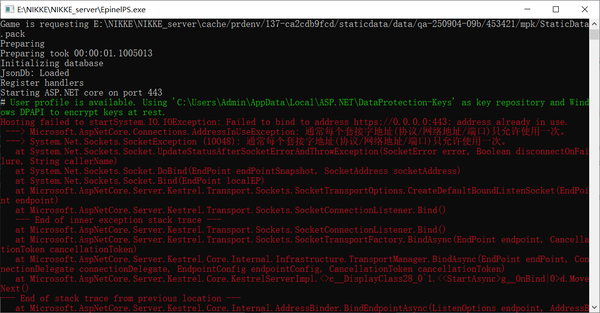 A:请检查ServerSelector.Desktop和EpinelPS是否在后台运行,请在游戏运行过程中不要关闭。